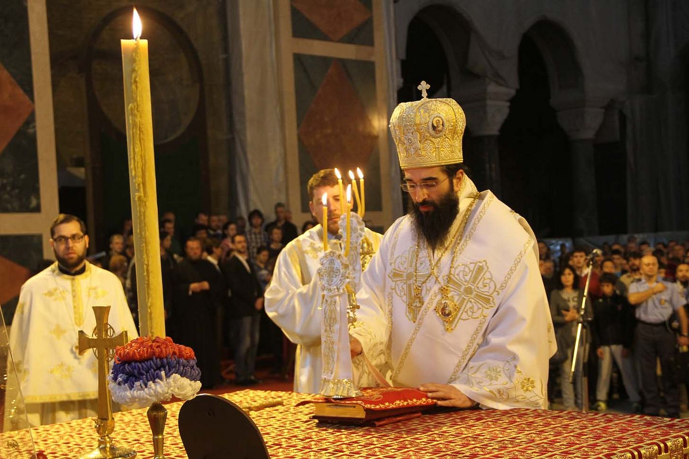 Обраћајући се ученицима београдских школа, њиховим учитељима, вероучитељима и родитељима, Епископ топлички г. Арсеније је пожелео срећну и успешну школску годину и напредак у свим областима и казао како нас учи и Јеванђеље, да не треба да бранимо деци да приђу Христу: -Христос децу позива као што и све нас позива. Христос је страдавши на Крсту раширио своје руке да обгрли читав свет, а изнад свих и пре свих да загрли децу. А ми да се запитамо да ли својим животима, својим примером, својим поступцима и делима, децу одвраћамо од Христа. Дакле, ако немамо изговора да приђемо за трпезу Царевога Сина, Господа нашега Исуса Христа, немамо изговора да бранимо својој деци да приђу Христу и упознају Богомладенца Христа, то невино дете које се родило у витлејемској пећини, дете које је и Бог и човек, Који је дошао да спасе читав свет. Зато смо се сабрали данас овде, браћо и сестре, да се помолимо Богу и призовемо благодат Пресветога Духа Светога да благослови почетак школске године, да благослови све учитеље и вероучитеље и сву децу и све родитеље.