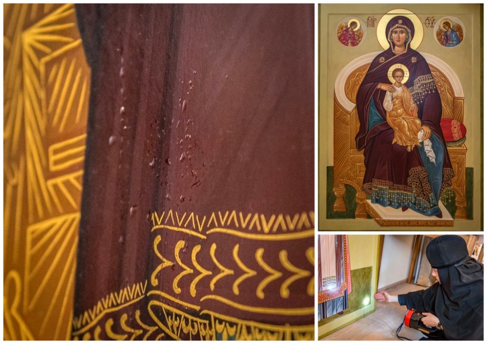 “I thought it was oil from an icon lamp,” relates the eyewitness of the miracle. “Having told the abbess about this, I took the icon lamp down and wiped the icon dry, even not examining these drops. Some while later I came to these icons again in order to make photographs of them and spotted similar drops already on the other icon. And it was at this very moment that I realized that these were not mere drops – it was a miracle of God.”