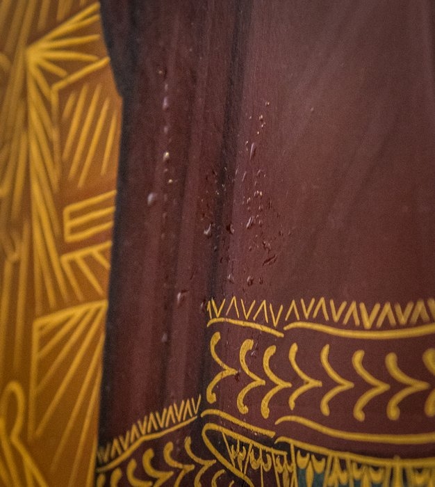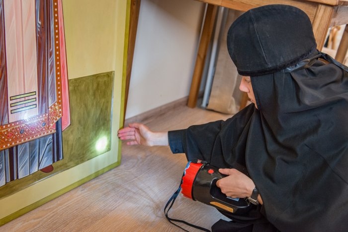 It was done for a simple reason: as it was very hot in the workshop, heat could worsen the process of desiccation of paint on the icons. Nun Alipia who watched over the “drying” of the icons, noticed abundant drops on one of them.