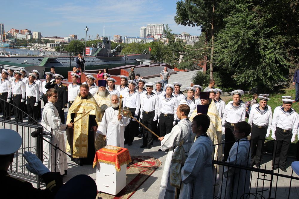 12 сентября 2015 года на Корабельной набережной Владивостока состоялась церемония передачи командованию Тихоокеанского флота ковчега с частицами мощей небесных покровителей Российского воинства, сообщает Патриархия.ru.