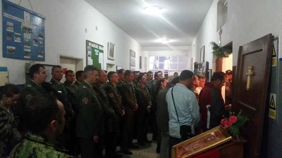 Светом архијерејском Литургијом је началствовао Епископ шумадијски и војни г. Јован уз саслужење надлежног Епископа г. сремског Василија, двојице војних свештеника, капетана Слађана Влајића и поручника Предрага Докића, као и ђакона Слободана Вујасиновића.