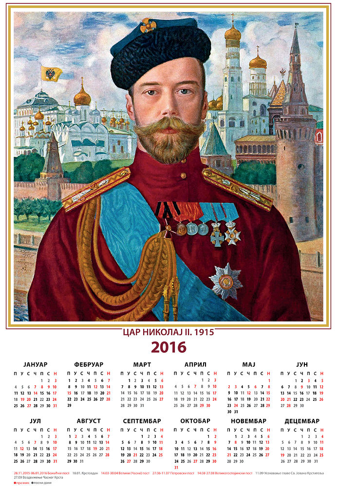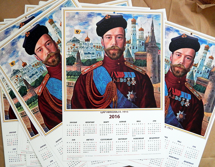 Почетком септембра појавио се у продаји зидни календар сериjе “Руски Цар“ за 2016 годину са портретом Цара Николаја II Романова.