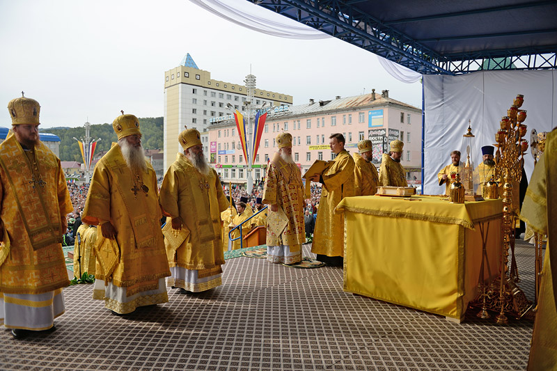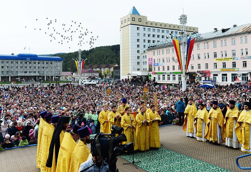 20 сентября 2015 года, в Неделю 16-ю по Пятидесятнице, Святейший Патриарх Московский и всея Руси Кирилл совершил Божественную литургию на центральной площади г. Горно-Алтайска. В 1830 году в этот день архимандритом Макарием (Глухаревым) было совершено первое на Алтае крещение местного жителя. Это событие считается началом деятельности Алтайской духовной миссии, сообщает Патриархия.ru.