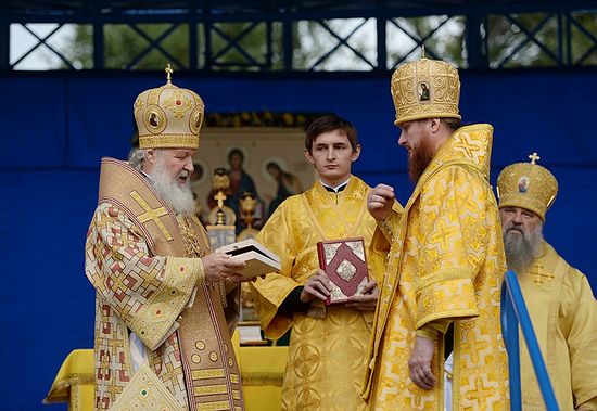 Богослужение совершалось на церковнославянском и алтайском языках. Ряд литургических возгласов Святейший Патриарх Кирилл произнес на алтайском языке.