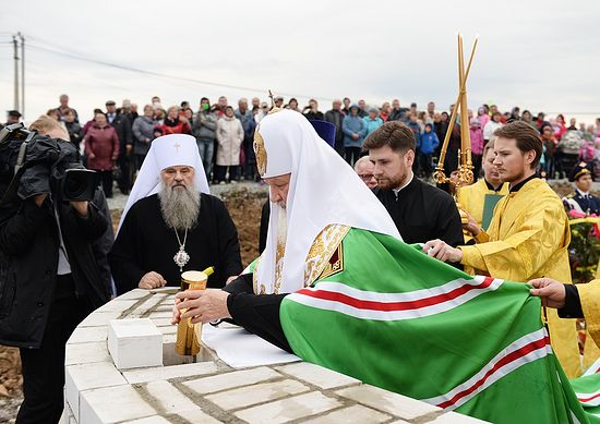в основание строящегося храмового комплекса