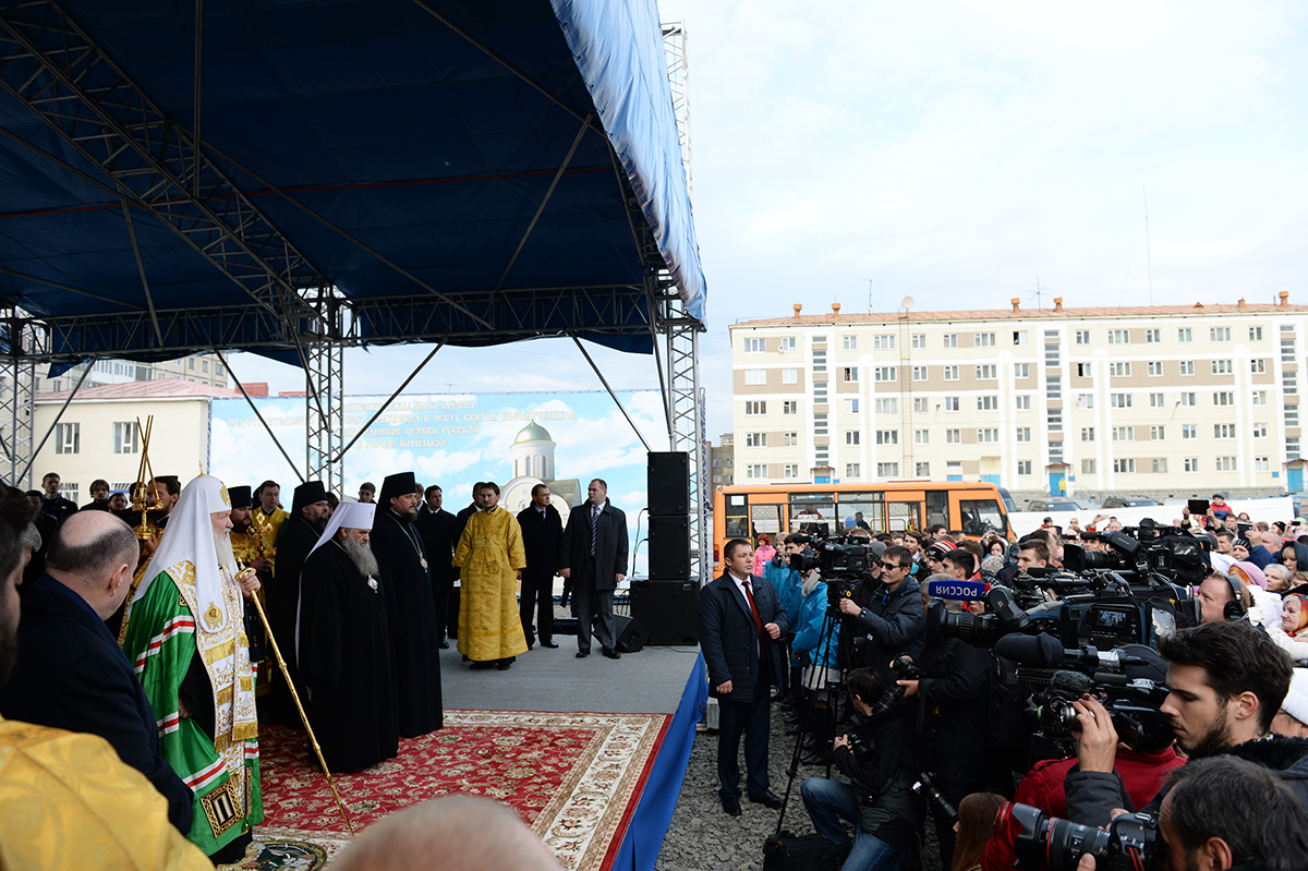 На Норильской земле много было новомучеников и исповедников. Имена многих нам не известны, но от этого не умаляется подвиг их жизни и значение их мученической кончины. Верим, что молитва, которая будет возноситься в этом храме, приклонит милость Божию ко всем, кто с верой обращается к Богу, чтобы и нам быть способными хранить твердость духа и свидетельствовать о правде. Это свидетельство так необходимо в современном мире, когда под видом правды часто скрывается ложь, когда информационное пространство воздействует на человеческое сознание, притупляя чувство бдительности. Сколь многих совращают яркие слова, популистские призывы, ложные ценности, и чаще всего жертвой беспамятства и потери ориентации является молодежь, потому что по своей природе она особо восприимчива.