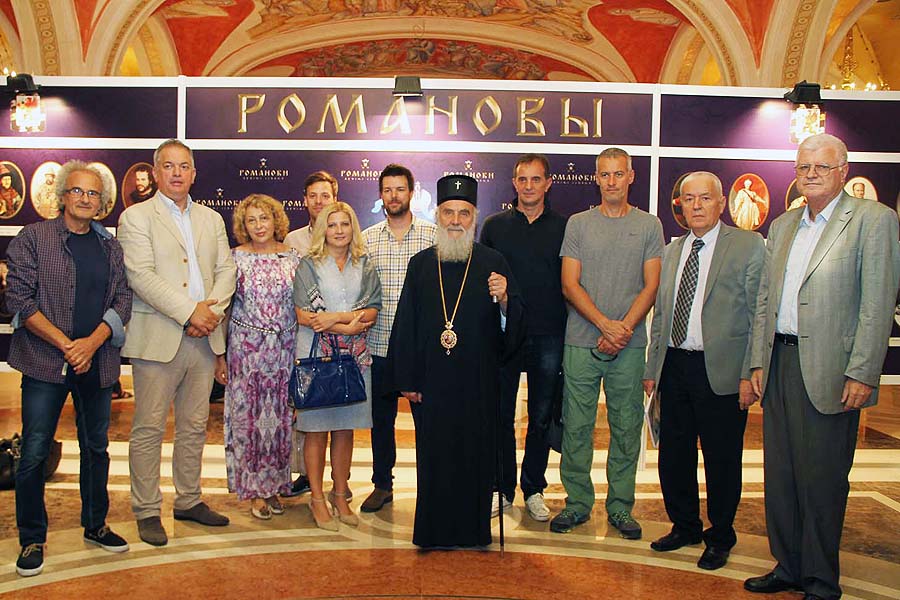 Патриарх Сербский Ириней с организаторами выставки "Четыре века Дома Романовых - пробуждение памяти"