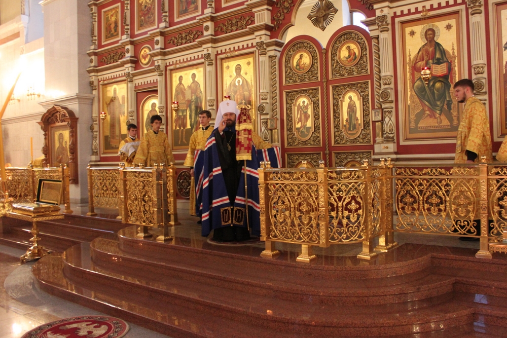 26 сентября 2015 года митрополит Волоколамский Иларион, находившийся в Хабаровске по благословению Святейшего Патриарха Московского и всея Руси Кирилла в рамках программы участия постоянных членов Священного Синода Русской Православной Церкви в епархиальных торжествах по случаю 1000-летия преставления святого равноапостольного великого князя Владимира, совершил Божественную литургию в Спасо-Преображенском кафедральном соборе города Хабаровска в сослужении митрополита Хабаровского и Приамурского Игнатия, епископа Биробиджанского и Кульдурского Ефрема, епископа Николаевского Аристарха, викария Хабаровской епархии и духовенства Приамурской митрополии, сообщает служба коммуникации ОВЦС.