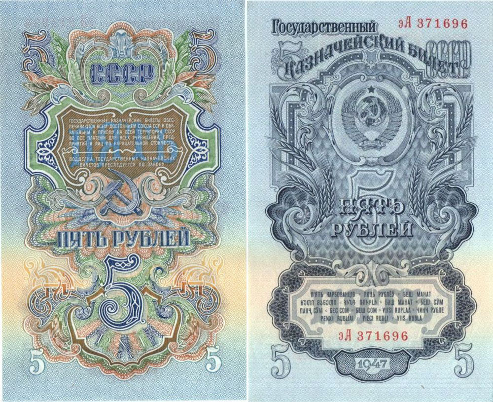 Как завороженный я смотрел на эту купюру темно-синего цвета с гербом Советского Союза над цифрой и надписью «Пять рублей».