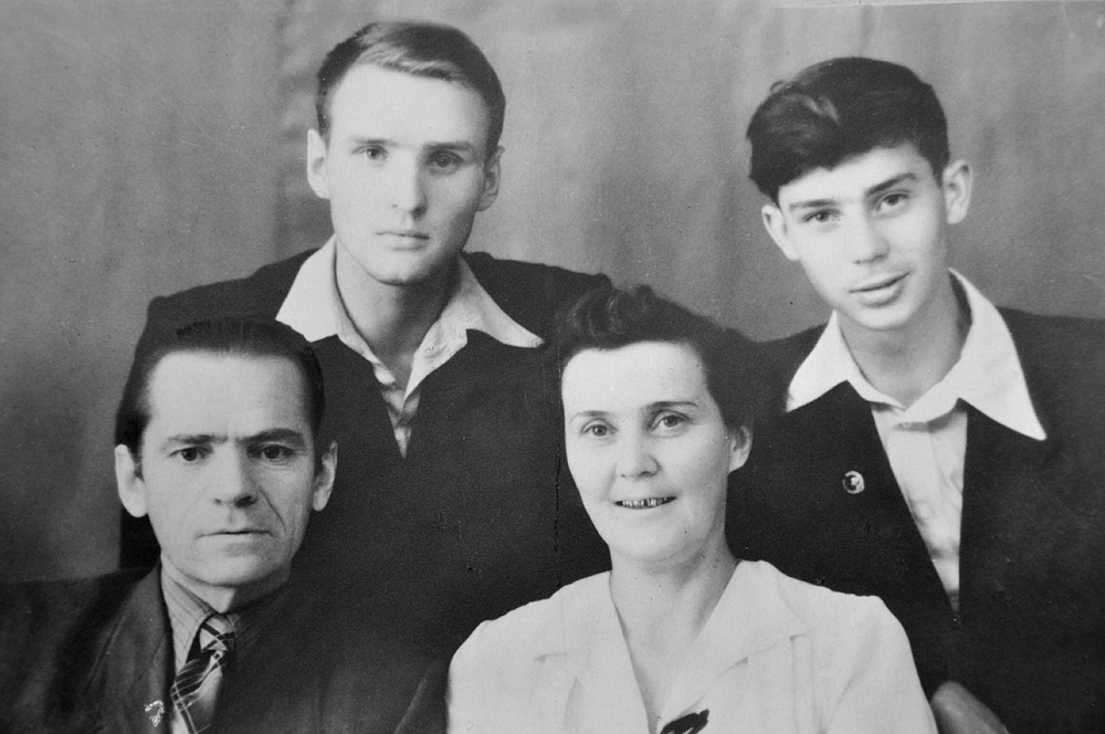 Алексей Федорович и Нина Кузьминична Солоницыны, их дети Анатолий и Алексей. Фото 1954 года, когда Анатолий после завода вновь вернулся в школу и закончил десятый класс
