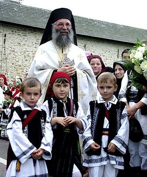 Архимандрит Мелхиседек (Велник), настоятель монастыря Путна, родился в 1961 г. в селе Чепленица Ясского уезда и во святом Крещении был наречен Михаем. В 1979–1984 гг. обучался в богословской семинарии Нямецкого монастыря, в 1985–1989 гг. – в Бухарестском богословском институте. После окончания обучения, 1 июля 1989 г., стал послушником монастыря Путна и 7 сентября того же года принял монашеский постриг от рук архимандрита Иакинфа (Унчуляка), настоятеля Путны, с наречением имени Мелхиседек. Вскоре, 10 сентября 1989 г., был рукоположен Патриархом Румынии Феоктистом в иеродиакона, а 15 августа 1990 г. митрополитом Молдовы и Буковины Даниилом, нынешним Патриархом Румынии, – в иеродиакона. 7 декабря 1992 г. произведен в протосингела епископом Герасимом (Кукошелом) и в тот же день избран настоятелем монастыря Путна. 7 марта 1993 г. епископом Пименом (Зайней) рукоположен в архимандрита, а 1 мая 1997 г. становится экзархом Сучавской и Рэдэуцкой архиепископии.