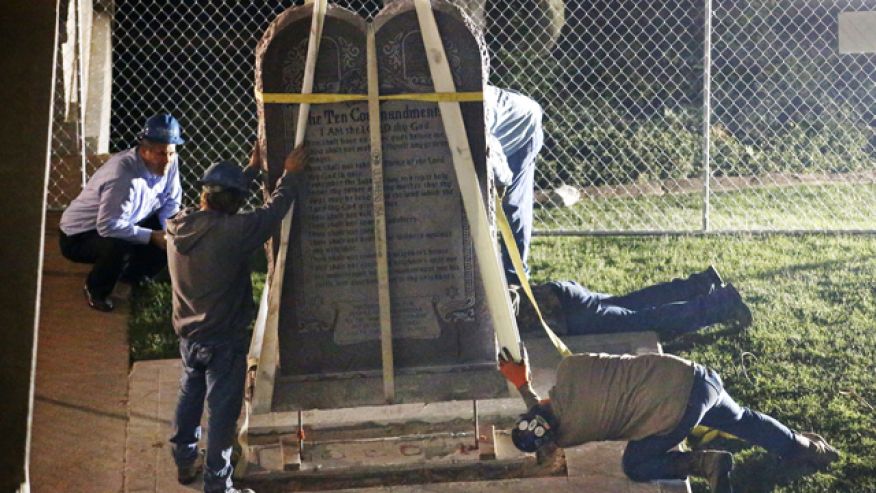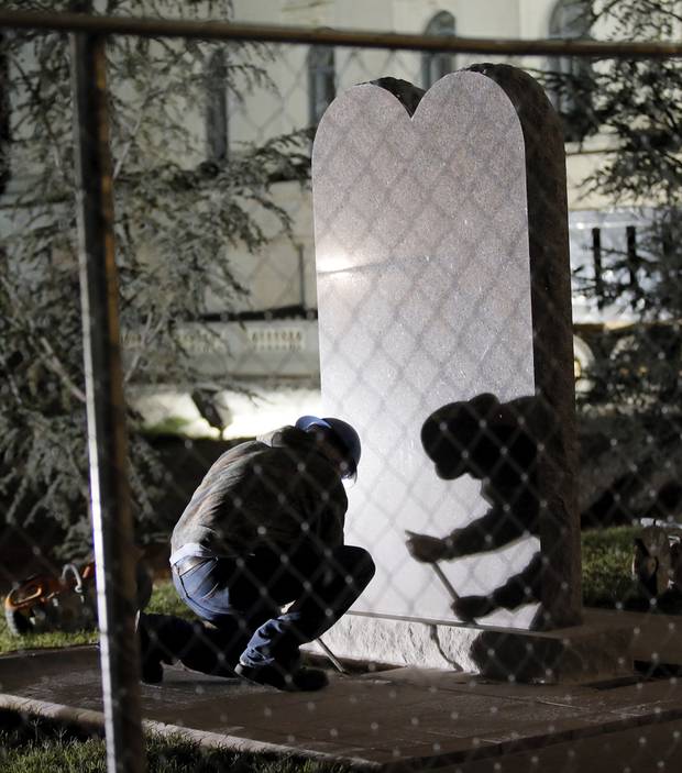 Рабочие демонтировали монумент «Десять Заповедей», находившийся перез зданием Капитолия в в Оклахома-Сити. Это произошло поздно вечером в понедельник 5 октября. FoxNews сообщает, что памятник будет установлен в другом месте.