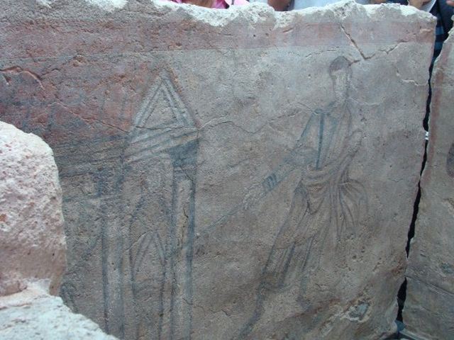 Another one of the murals on the inside of the 4th century AD Roman town shows another biblical scene in which Jesus Christ (right) heals the paralyzed man. Photo: 24 Chasa daily