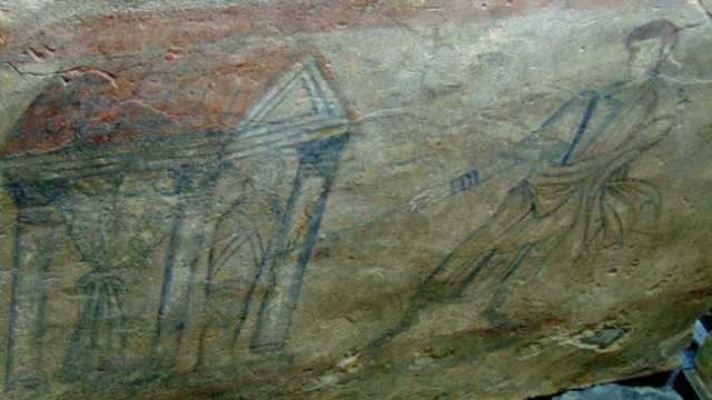One of the murals on the inside of the Early Christian tomb depicting the biblical scene of Jesus Christ (right) resurrecting Lazarus. This is said to be the world’s earliest known depiction of this scene. Photo: 24 Chasa daily
