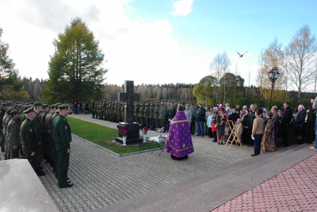 Поклонички крст је постављен и освећен на меморијалном гробљу погинулих пробних пилота ракетно-космичке технике у граду Мирном (Архангелска област). Споменик представља копију крста који је урадио скулптор Вјачеслав Кликов. Оригинал је постављен у Москви код споменика Димитрију Донском, преноси прес-служба Архангелске епархије.