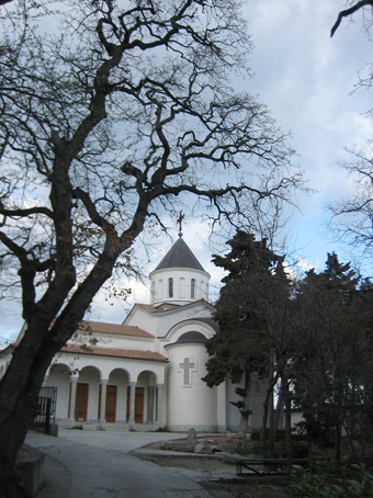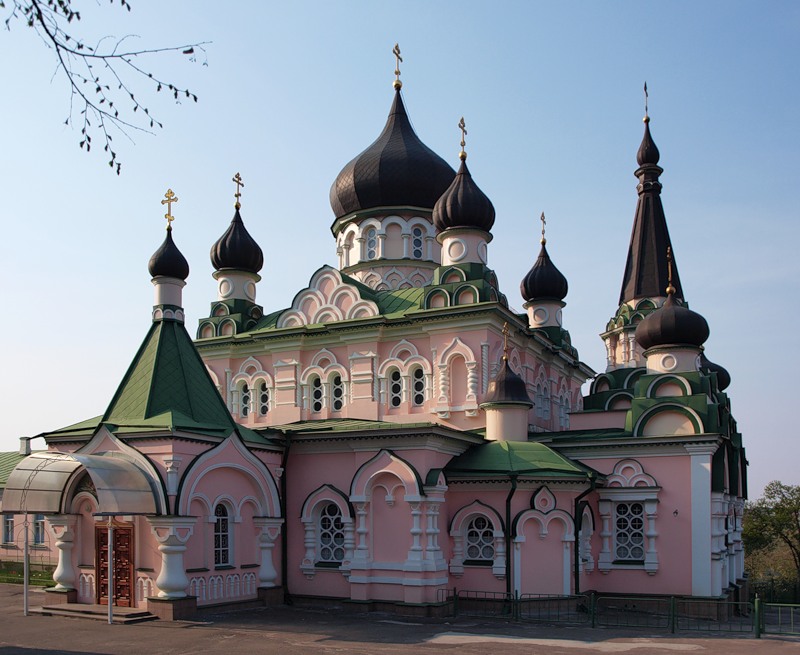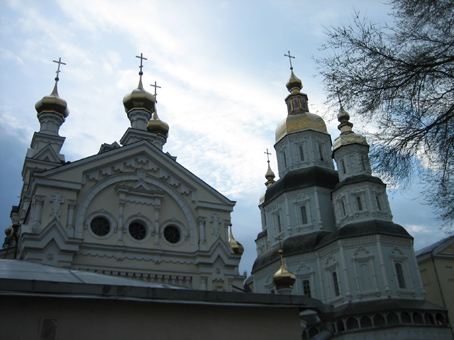 А киевский Покровский Княгинин монастырь стоит на горе Вознесенской, почти в самом центре мегаполиса. А на этой тихой горе, если кто не знает, стоит самый высокий храм Украины — Свято-Никольский собор, главное сооружение Покровского женского монастыря, основанного в конце XIX в. Собор был построен за 15 лет, в1896–1911 гг., по проекту киевского архитектора Владимира Николаева, в неороссийском стиле по эскизному рисунку великого князя Петра Николаевича, сына основательницы монастыря. У безбожников и на эту красоту поднялась рука, но сегодня после восстановительных работ красавец-собор предстает в своем первозданном златоглаво-златокрестном виде.