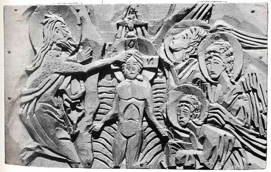 Вручную вырезанная из дерева дарохранительница используется во время крещений. Создана она эскимосским мастером резьбы по дереву Виктором Ником в 1987 г. Дарохранительница изображает сцену Крещения Иисуса Христа Иоанном-Крестителем в присутствии трех ангелов. Труд местных ремесленников как правило использовался православными миссионерами при строительстве церквей. Например, алеутские резчики по дереву были задейстованы о. Иоанном Вениаминовым для украшения новой церкви в г. Уналашка (строительство началось в 1825 г.) и создания иконостаса святыни.