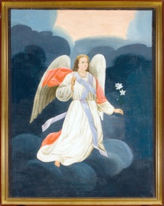 Икона Архангела Гавриила была написана алеутским иконописцем Григорием Петуховым, учеником о. Иоанна Вениаминова, выпускником семинарии и, возможно, первым иконописцем из числа коренных жителей Аляски.