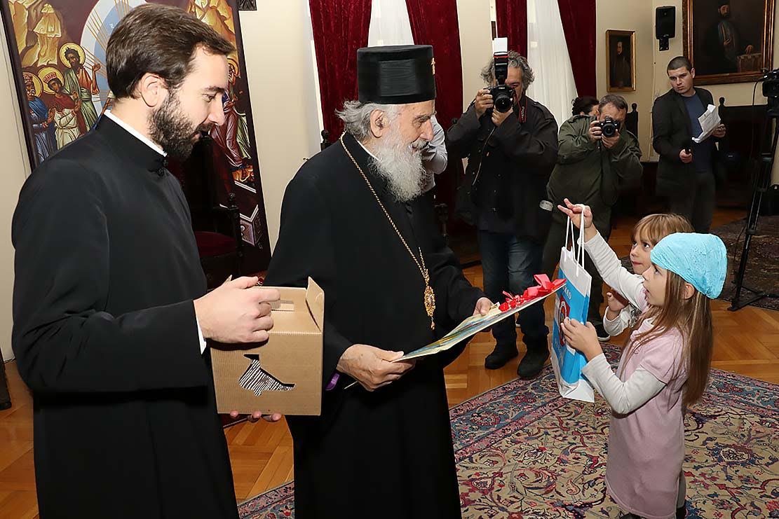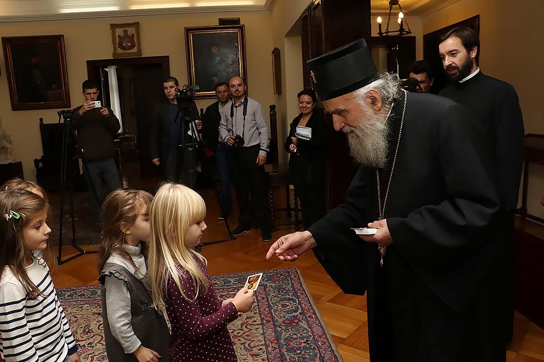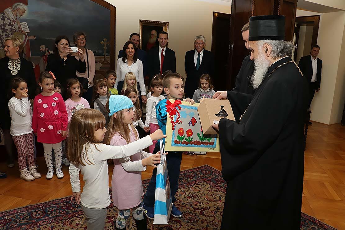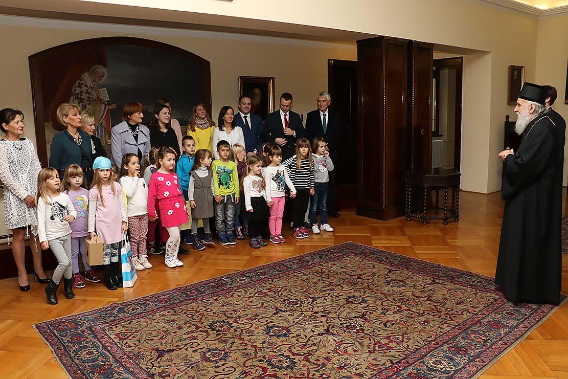 Његова Светост Патријарх српски г. Иринеј примио је данас, 20. октобра 2015. године, у Патријаршији српској у Београду децу из Вуковара, којa су у посети Београду током манифестације "Дани Београда".