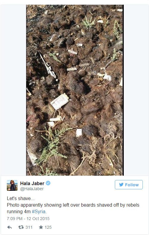 A photo on Twitter posted by Iraqi journalist Hala Jaber shows huge piles of hair. The journalist tweeted that the ISIS fighters shaved off their beards so they could escape clean shaven to Turkey.