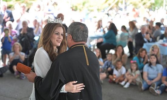 Miss America Betty Cantrell, of Warner Robins, was in Macon on Sunday at the Central Georgia Greek Festival held at her home parish, the Holly Cross Greek Orthodox Church on First Street.