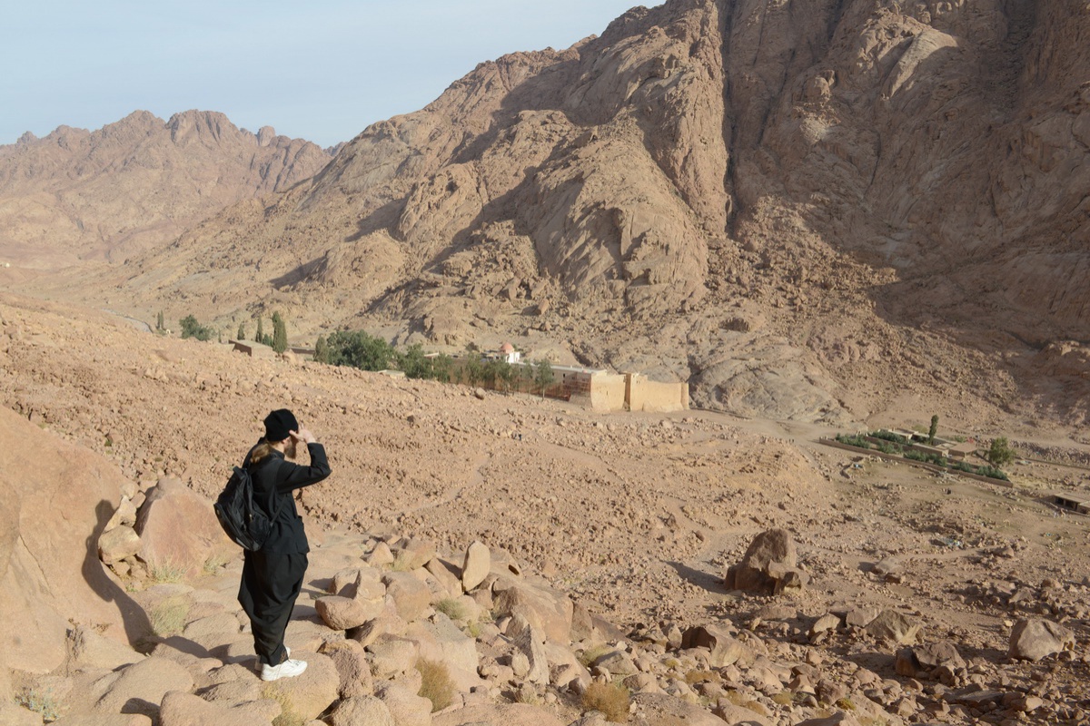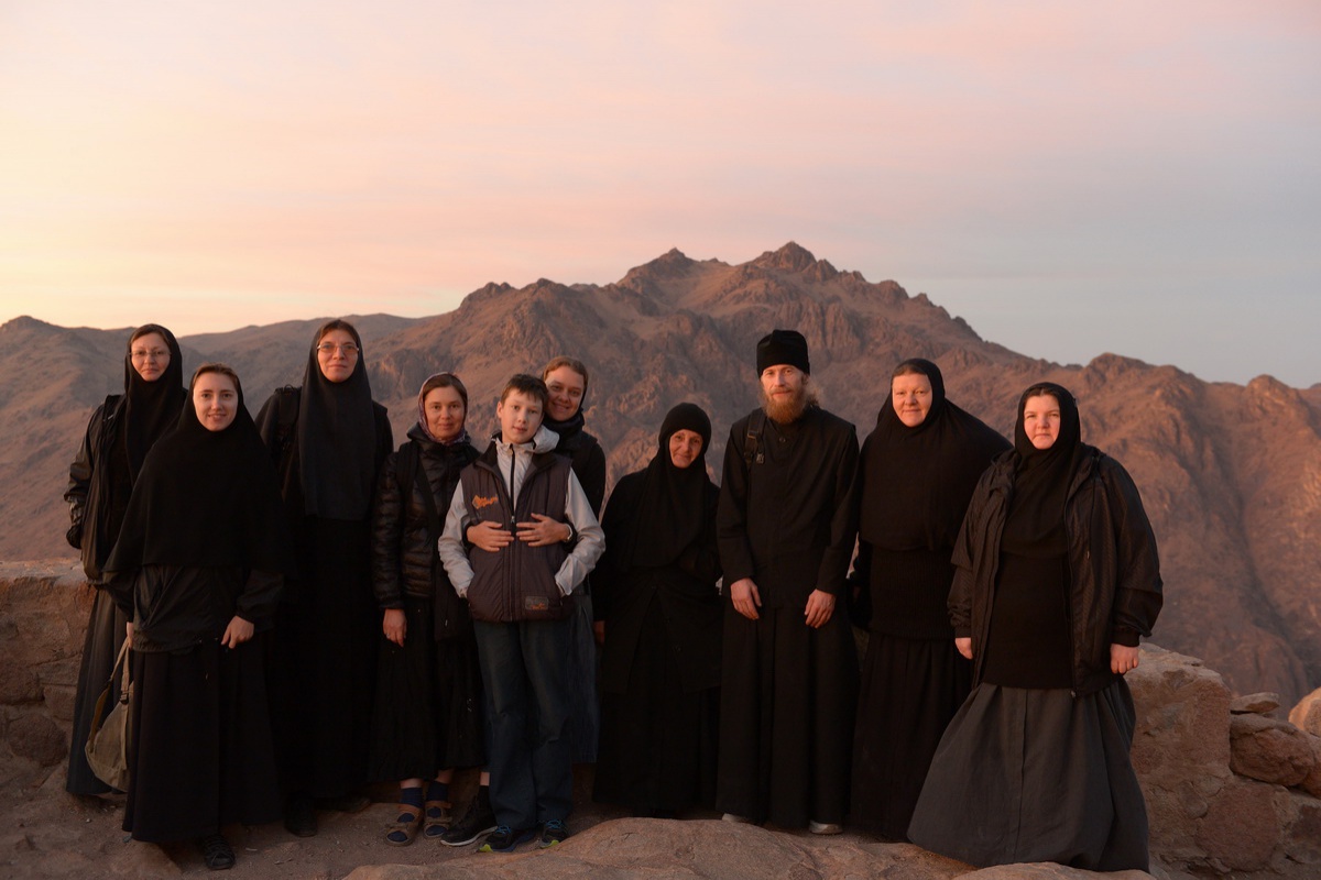 Группа из двадцати человек на автобусе достигла Эйлата, самой южной точки Израиля на берегу Красного моря, где пересекла границу с Египтом. Оттуда на двух небольших автобусах паломники ехали сначала вдоль Акабского залива, а затем повернули вглубь Синайского полуострова, достигнув монастыря к началу вечерней службы.