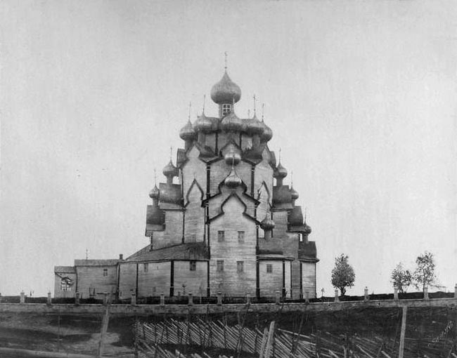 Как выглядела церковь с 25 куполами, мы можем судить по фотографии С.М. Прокудина-Горского. Он посетил Вытегорский погост в 1909 году.