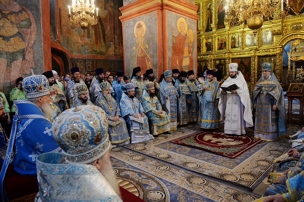 The Primate of the Russian Orthodox Church celebrated the Divine Liturgy at the Cathedral of the Smolensk Icon of the Mother of God. Concelebrating with His Holiness was an assembly of archpastors and pastors of the Russian Church.