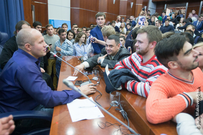 29 октября Федор Емельяненко пришел в МГИМО, чтобы поговорить со студентами о борьбе физической и духовной. Аудитория битком, полтора часа разговора и, естественно, десятки селфи с чемпионом по окончании. О чем говорили? «Фома» публикует самые интересные отрывки беседы.