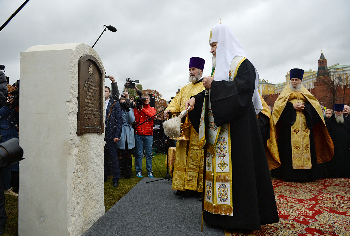 3 ноября 2015 года на Боровицкой площади г. Москвы Святейший Патриарх Московский и всея Руси Кирилл совершил освящение закладного камня на месте установки памятника святому равноапостольному великому князю Владимиру, 1000-летие преставления которого отмечается в этом году.