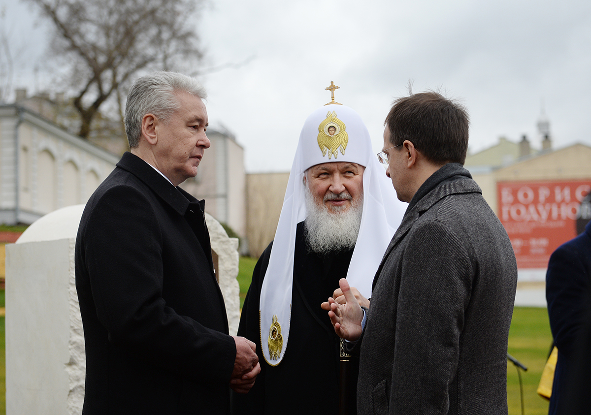 На церемонии освящения закладного камня присутствовали министр культуры Российской Федерации, председатель Российского военно-исторического общества В.Р. Мединский и мэр Москвы С.С. Собянин, сообщает пресс-служба Патриарха Московского и всея Руси.