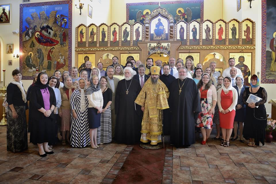 On Sunday morning, a festive greeting and vesting of the bishop took place. The Divine Liturgy was peacefully prayerful. All the work that went into rehearsing and conducting technique during the conference was evident in the beautiful singing witnessed by those who attended the Divine services. At the end of Divine Liturgy, the thunderous chant of “Many Years,” along with the words of gratitude from Vladyka and Father Igor, warmed the hearts of those present. After the service, the parish hosted a farewell banquet, during which the LMC thanked all the local organizers, presenting gifts to those who made significant contributions: Vladyka Theodosy, Father Igor and Matushka Shitikov, Elder sister Rose Agayev, Music Director Vladislav Markov and Olga Markov, an anonymous donor, Vitaly Macas, Louise Kudrov, Katherine and Alexei Lukianov, Peter Jermihov, and Eugenia Temidis.