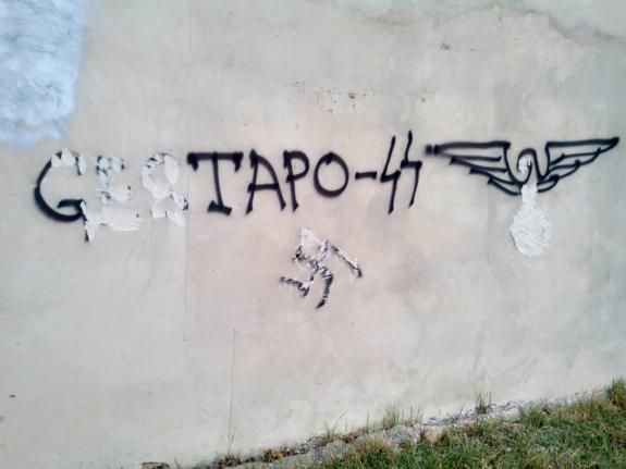 Вандалы разрисовали здание церкви в ночь на 10 ноября. Черной краской на тыльной стороне храма начертаны слова «Гестапо», «хай Гитлер», изображены свастика, руны и герб Третьего рейха.