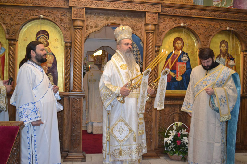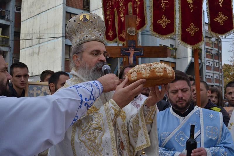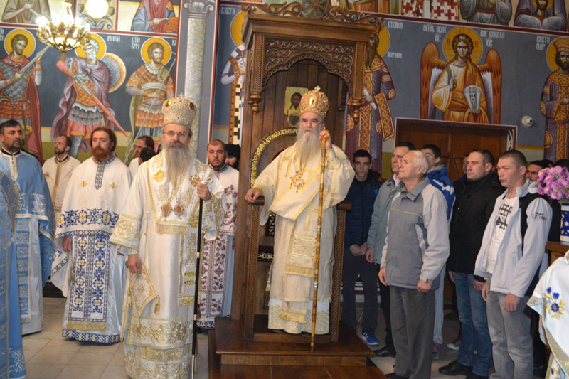 Његово Високопреосвештенство Архиепископ цетињски и Митрополит црногорско-приморски г. Амфилохије и Његово Преосвештенство Епископ рашко-призренски г. Теодосије, уз саслужење свештенства, служили су у недељу, 8. новемра 2015. године, на празник Светог великомученика Димитрија-Митровдан, свету архијерејску Литургију у цркви посећеној овом светитељу у Косовској Митровици, поводом храмовне славе ове светиње.