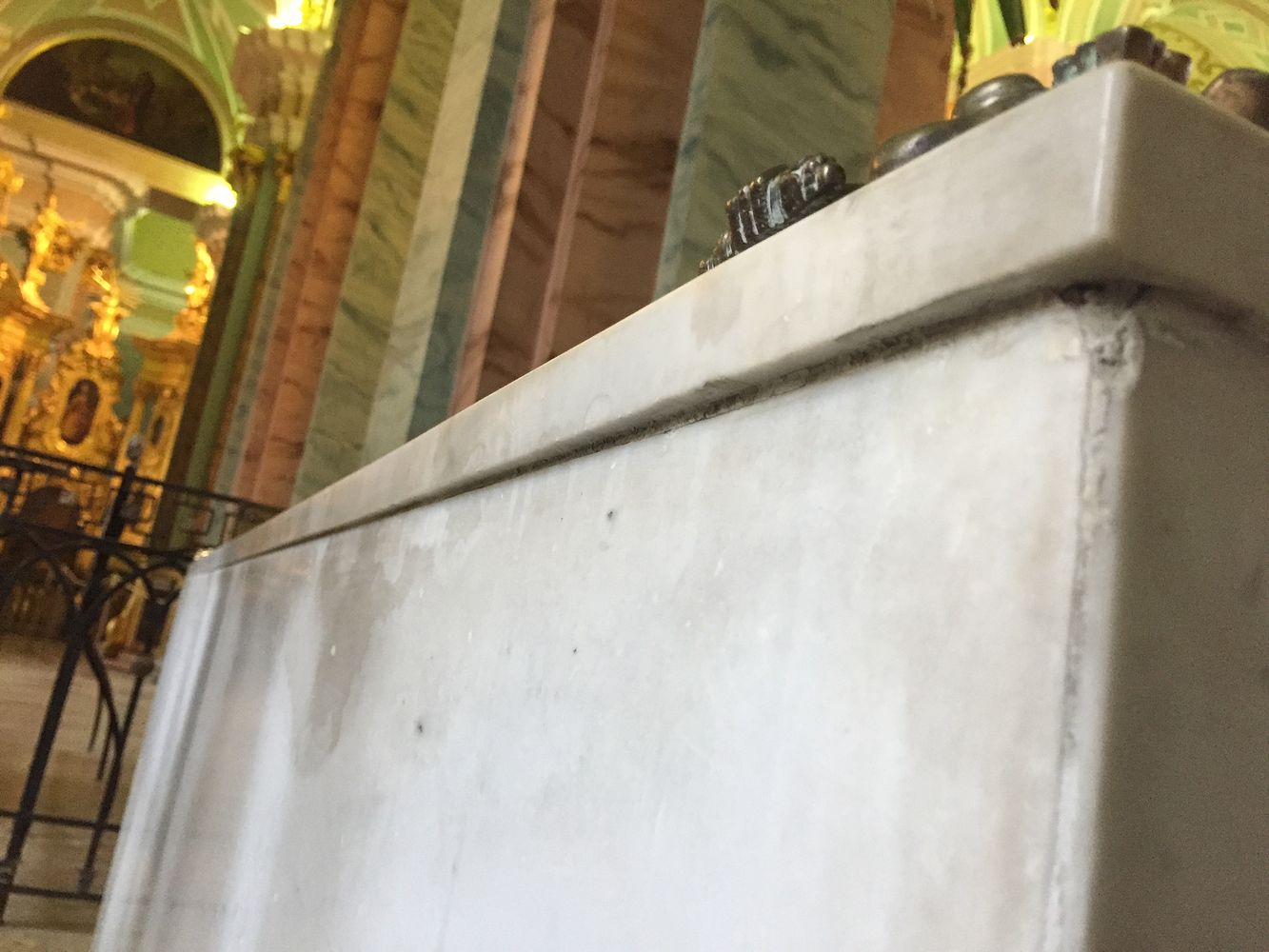 Али ево, кад смо били у прилици да, нашавши се у Петропавловској тврђави, пажљиво прегледамо и испитамо надгробни споменик пре почетка радова, открили смо врло неочекиване и занимљиве моменте. Погледајте пажљиво: горња плоча је померена.
