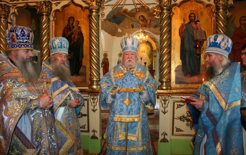 Митрополит Чувашский Варнава, архимандрит Василий (Паскье), архимандрит Иероним (Шурыгин) и протоиерей Валерий Андреев