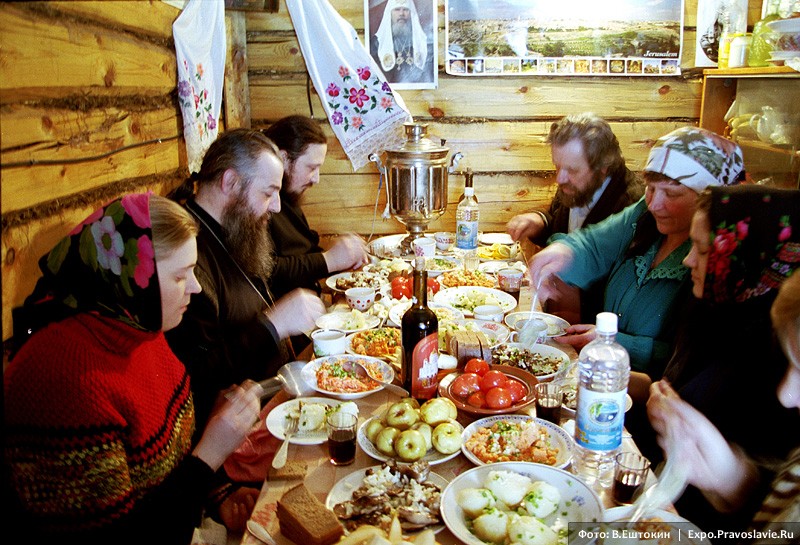 Отец василий Паскье с прихожанами на праздничной трапезе. Фото: Владимир Ештокин / Expo.Pravoslavie.Ru