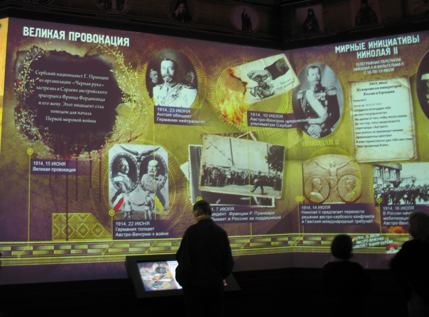 И вновь, уже в третий раз, мне хочется выразить свое восхищение всем организаторам и создателям этой выставки. Они сумели превратить казалось бы банальную экспозицию на историческую тему в потрясающее и захватывающее мультимедийное и интерактивное зрелище. В 12 залах представлены: 3000 информационных статей, 3700 иллюстраций, 700 (!) архивных документов, 100 часов документальной хроники. «Живая» анимированная лента времени (она действительно непрерывно движется!), наполненная фотографиями и отрывками из архивных материалов, протянулась на 250 метров.