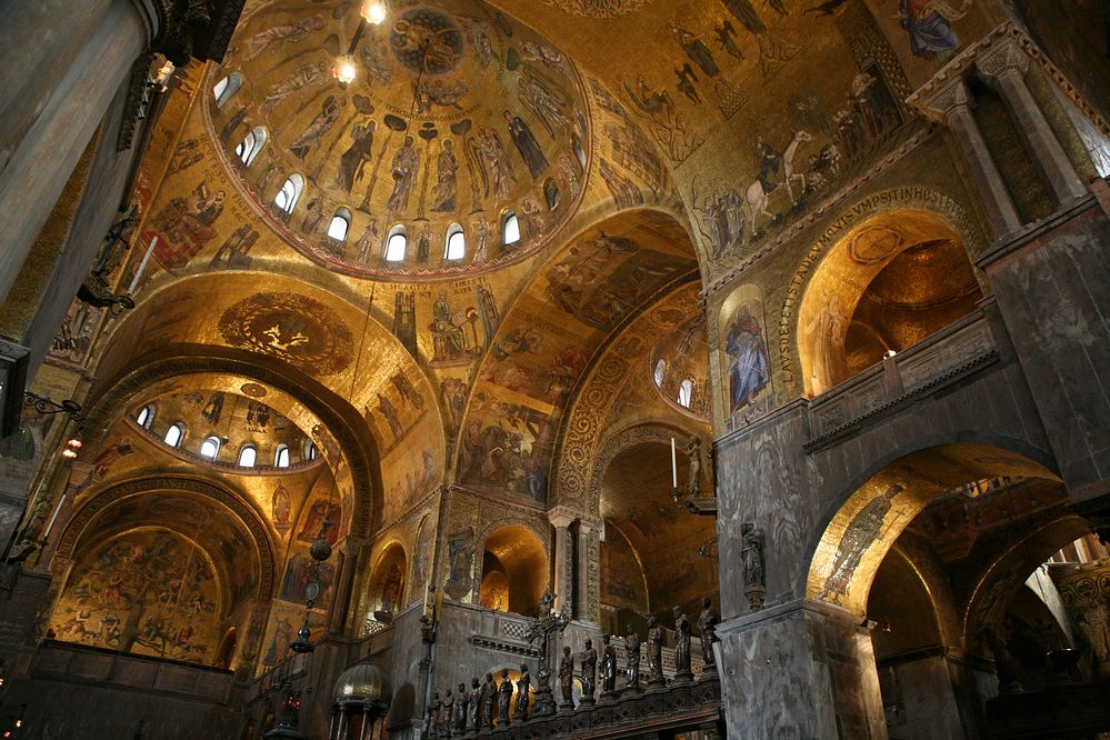 Кстати, Джотто, расписывая капеллу Скровеньи, вдохновлялся мозаиками этого собора, всё внутреннее убранство которого было сугубо православным. Да и сам собор построен по образу церкви 12 апостолов в Константинополе, так что, глядя на него, мы можем представить, как выглядел храм, в котором служил Иоанн Златоуст (он был уничтожен в 1461 году). Вообще, когда попадаешь в Сан-Марко, чувствуешь, что это духовное творение. Там особенная атмосфера, как в храме Святой Софии. Собор построен с молитвой, с любовью, по откровению Божественному.
