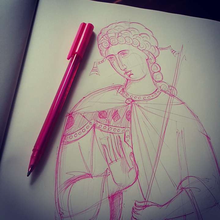 As for whether my style has any merits, perhaps that would be for others to judge. In terms of its relation to historical work, what I strive to do is use the same Byzantine system used throughout all periods and schools of Byzantine painting, that is, the use of line, colour, composition and perspective to create icons that fulfil the ecclesiastical and liturgical function of the icon which is to bring the viewer into communion with the person depicted here and now.