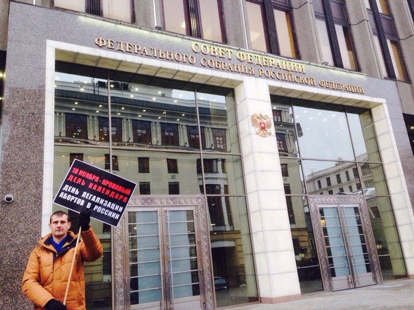 18 ноября, в день 95-й годовщины легализации абортов в Советской России, у входа в здание Совета Федерации и Государственной Думы прошли одиночные пикеты в защиту жизни ребенка до рождения.
