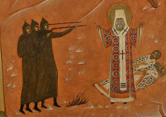 Убиение святителя Кирилла, митрополита Казанского 7(20) ноября 1937 года. Фрагмент клейма иконы Новомучеников и Исповедников Церкви Русской