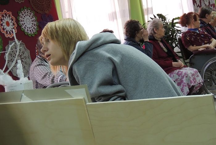 – О, да, это важно. Поначалу, бывает, и смешки раздаются, и рот кривят некоторые. Потом, когда посмотрят на старших ребят, пообщаются с жителями дома-интерната, поймут, что это такое – без рук, без ног жить, – отношение к страданию меняется. Взгляд становится взрослее и добрее. Бывает и короткий период заигрывания с тем, кто слабее, – это от неуверенности, я думаю. Но потом, когда школьники видят силу, волю к жизни и добрым делам тех, кого мы называем «инвалидами», всё встает на свои места. Воспринимают друг друга как совершенно равных, без заискиваний и уж тем более улыбочек. Да и какие тут улыбочки, когда старики тебя столькому научить могут: вот тебе, пожалуйста, шитьё, вот тебе вязание, вот – …да всё что хочешь!