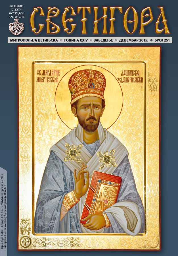 Централна тема ваведењског броја јесте прослава новог светитеља са подручја Црне Горе, онога који је, «Својим подвигом закрстио васељену» – светог Мардарија љешанско-либертвилског. Приликом прве литургије која је служена у Митрополији црогорско-приморској у част прослављења светог Мардарија, у родном мјесту светитеља Корнети, код Цетиња, бесједио је архиепископ цетињски, митрополит црногорско-приморског г. Амфилохије „Америка нас бомбама, ми њу свецима“. А читаоци ће имати прилику да прочитају и бесједу светог владике Мардарија «Апел руском народу», коју је Мардарије као деветнаестогодишњи јерођакон изговорио 1908. године у Житомиру након анексије БиХ од стране Аустроугарске монархије. Смиља Влаовић ће вас упознати са животописом светог владике Мардарија Ускоковића, првог српског епископа Америке и Канаде.