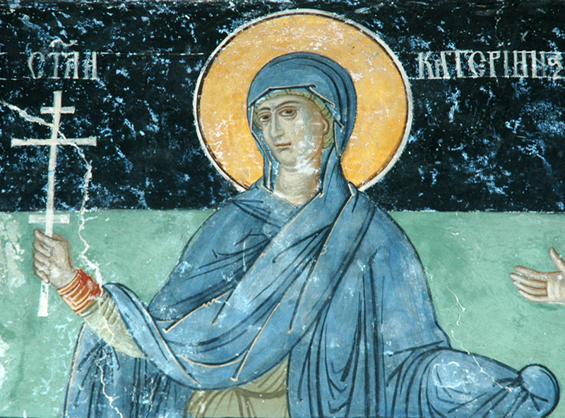 Нама, који данас празнујемо спомен свете Екатерине, од свега највише приличи да обратимо пажњу на њено свештено житије. Утолико нам је такво дело приличније, сестре, уколико појмимо да живот свете великомученице у својим најглавнијим цртама представља изображење монашког подвига. Нема у овом упоређењу никаквог претеривања. Уверите се у то и саме: ето, пред вашим је очима икона свете Екатерине. Она клечи на коленима пред Мајком Божијом која на рукама држи МладенцаСпаситеља. Он, опет, светој Екатерини пружа веренички прстен. То је најважнији моменат у животу светитељкином - моменат када се уневестила Господу своме. Њему је, као што вам је познато, претходила жеља и чежња за бољим, а за њим је следило мучеништво. Тежња за бољим вeликомученицу је привела Господу. Сјединивши се са Господом, она беше уведена у подвиг мучеништва и овенчана непропадљивим венцима. Ето главних црта из живота свете Екатерине. Исте такве моменте пронаћи ћете и у свом животу, уколико га ваљано проводите.