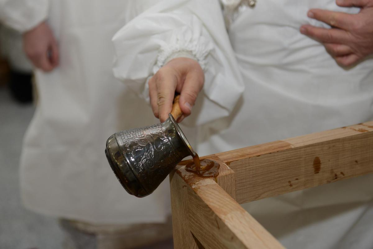 На недавно установленной временной колокольне впервые зазвонили девять новых колоколов, отлитых в Каменске-Уральском (Россия), радостно благовествуя о рождении нового храма.