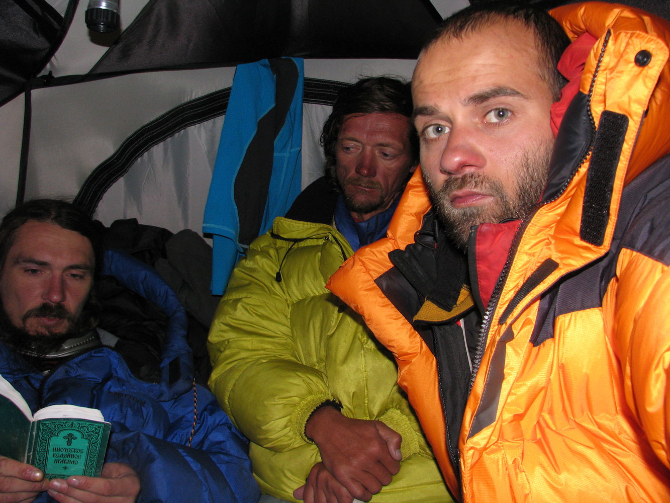 Мы долго искали место, где поставить палатку, – ветер был уже очень сильным, –поставили под защитой скал, и, когда начали готовиться к службе, было, наверное, уже часа три дня.