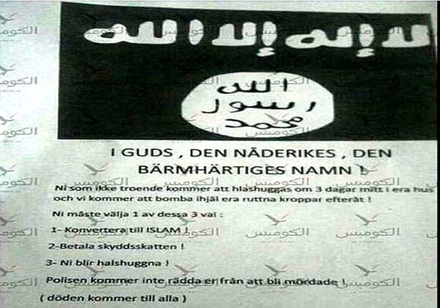 Police and intelligence officials are taking the threat of forced conversion very seriously and are investigating the matter. The letters have been distributed into mailboxes across the entire country of Sweden, not just in Stockholm.