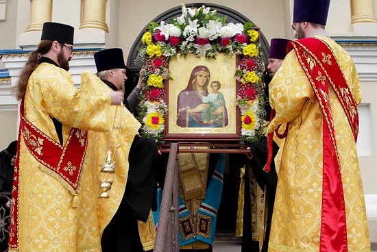 Уочи 19. децембра 2015. године Митрополит лугански и алчевски Митрофан одслужио је свеноћно бденије у Сабоном храму Светог апостола Петра у Луганску. Пред почетак службе свечано је дочекана јерусалимска икона Матере Божје донета из свештеног мушког манастира Вазнесења Господњег у селу Хорошеји. Наиме, почетком овог месеца једна поклоничка група од епархијских свештенослужитеља вратила се из Свете земље, где су осветили копију јерусалимске Матере Божје на њеном оригиналу.У наредно време ова икона ће походити више храмова Луганске епархије. После богослужења владика Митрофан је са свештеницима прочитао акатист Пресветој Богородици.