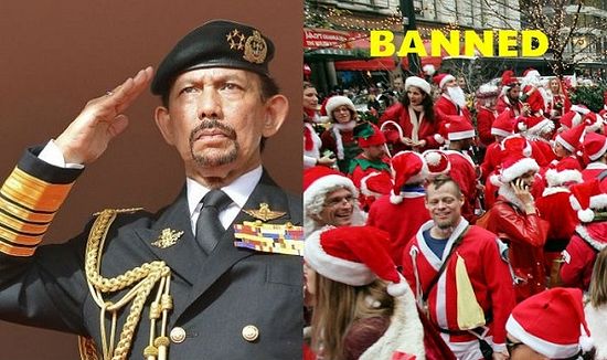 The Borneo Bulletin quotes varopis Imams saying that Muslims lighting candles, putting up Christmas trees, singing carols, wearing Santa Claus outfits or doing anything related to Christmas is against the Islamic faith. Hassanal Bolkiah is the 29th and current Sultan and Yang Di-Pertuan of Brunei.